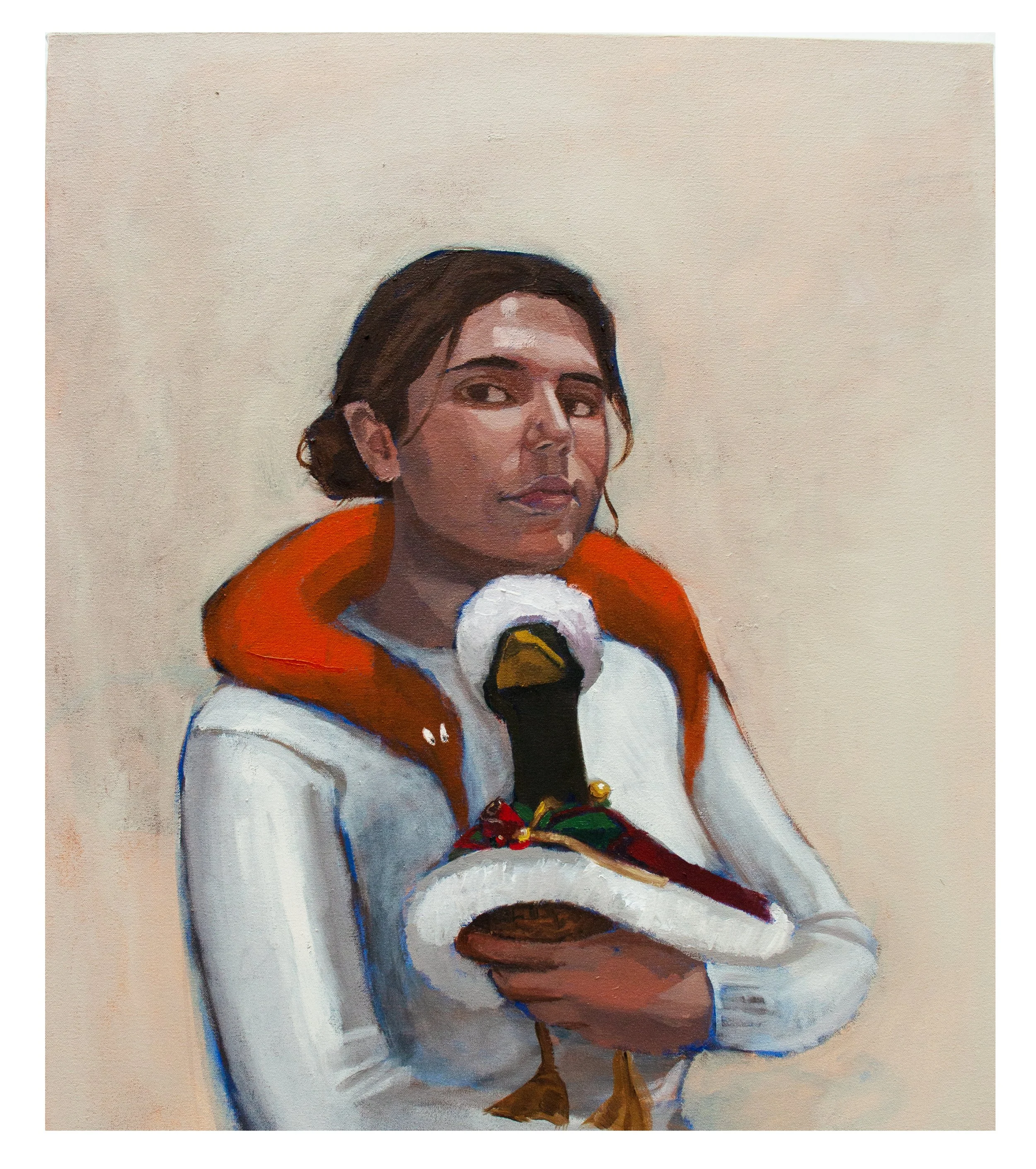 Rachel, the Duck, and Squirmles, 40" X 30" oil on canvas, 2021