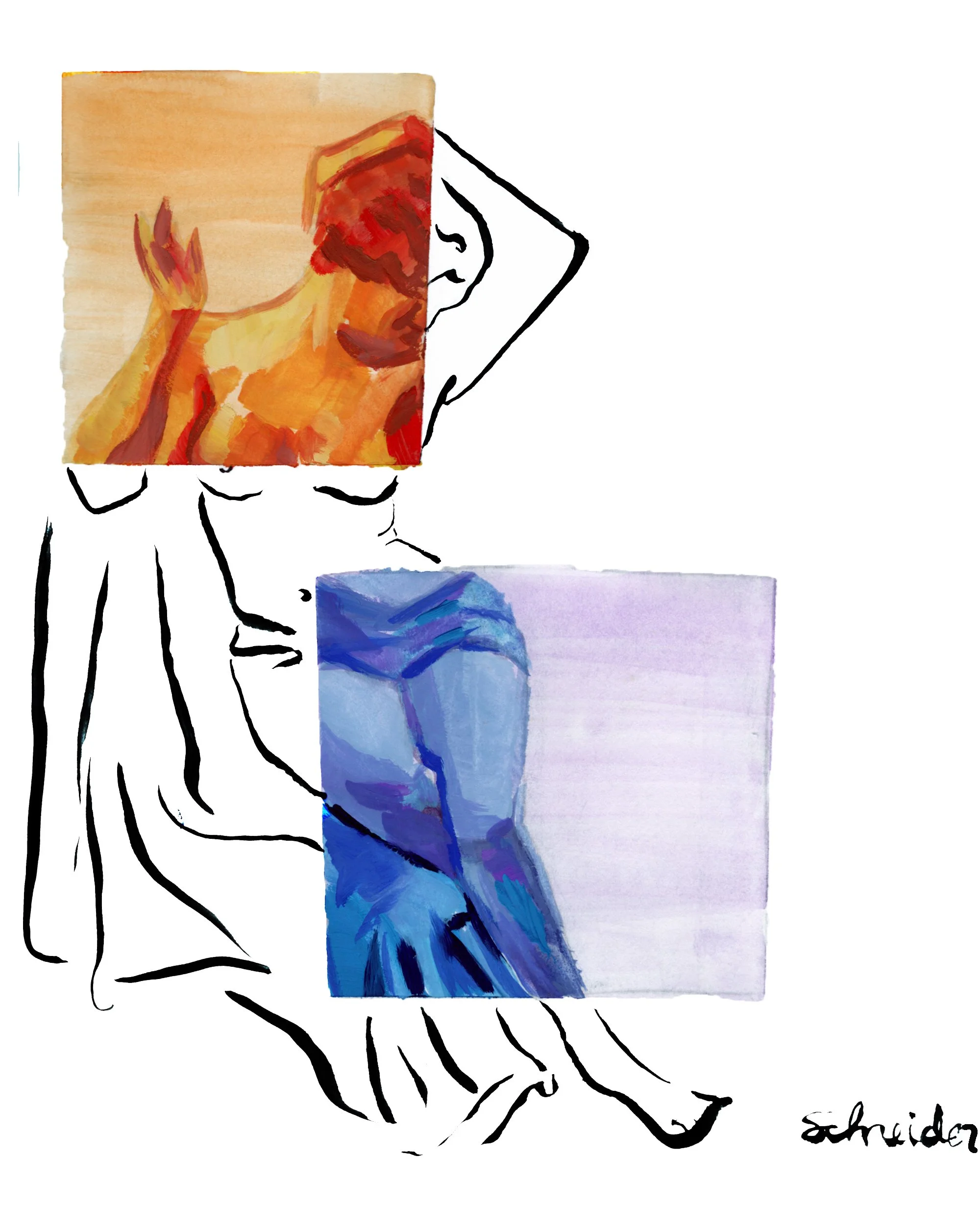 Woman and mirror, 9" X 12", gouache on paper, 2020